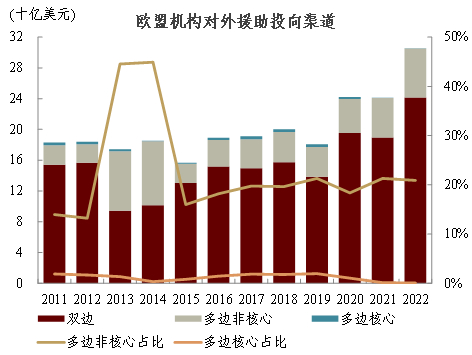 [105] 统计时间为2011-2022年,含多边核心与非核心资金。数据来源:OECD。