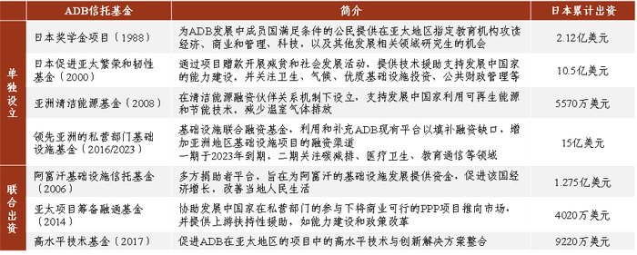 图表16:日本政府在ADB设立的部分信托基金