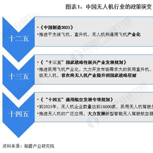 2016年,《“十三五”国家战略性新兴产业发展规划》出台,提出推进民用飞机产业化,大力开发市场需求大的民用直升机、多用途飞机、特种飞机和工业级无人机,首次将无人机产业提升到国家战略层面。2017年,工信部发布《关于促进和规范民用无人机制造业发展的指导意见》,规划至2020年,民用无人机产业持续快速发展,产值达到600亿元,年均增速40%以上。