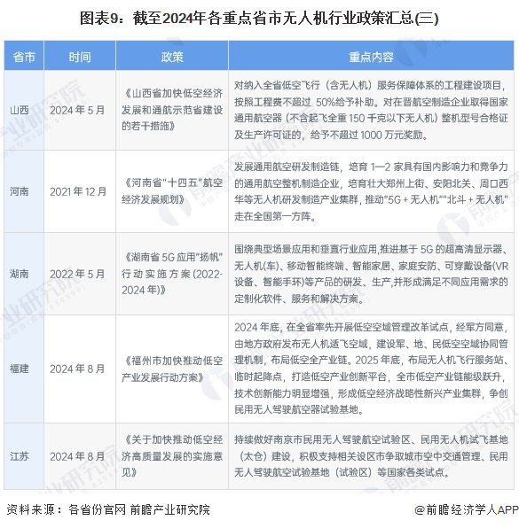 地方政府层面,为了响应国家号召,各省市积极印发有关政策通知推动无人机行业的发展。截至2024年10月,各重点省市无人机行业的相关政策汇总如下: