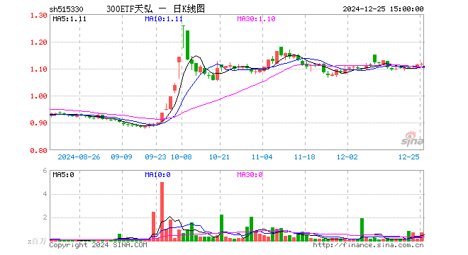 12月25日300ETF天弘(515330)份额增加2400.00万份,最新份额110.79亿份,最新规模123.75亿元