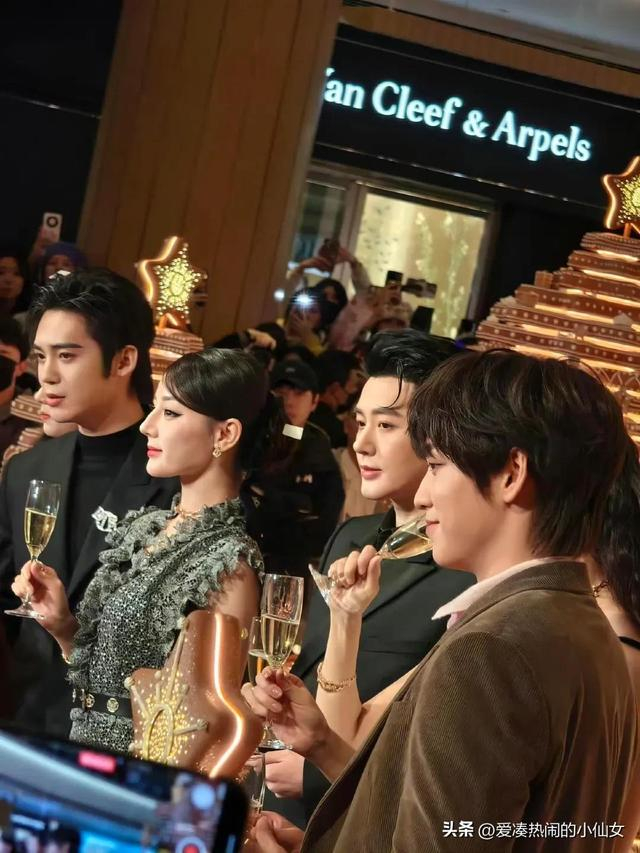 这一天,城市的喧嚣被追星族们的热情推上了新的高峰。在蒙牛新品发布会现场,气氛热烈而温馨,紫色与白色相间的梦幻装饰点缀着舞台,新品展示区的灯光闪烁,映照着即将登场的神秘新品。而另一边,Dior 的圣诞点灯活动现场则充满了浓郁的节日奢华氛围,巨大的圣诞树被璀璨华灯环绕,商场外早早排起了长龙,粉丝们手持应援物,满怀期待,口中呼出的热气在冬日的空气中凝结成白色的雾霭,只为第一时间目睹偶像的风采。