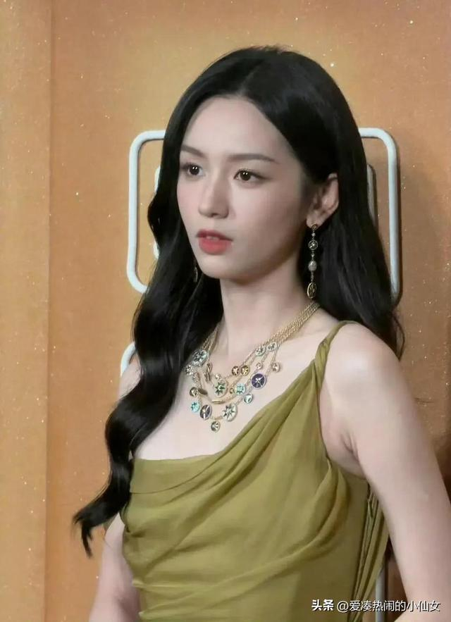 她身着一套深灰色的丝绒长裙,本应是高贵典雅的象征,然而这套礼服却在细节上与她的气质产生了微妙的 “冲突”。裙子的设计略显厚重,复杂的褶皱与拖地的裙摆让她的行动略显拘谨,仿佛被华丽的服饰束缚住了手脚。深灰色的色调在灯光下缺乏层次感,未能凸显出她原本白皙的肤色优势。