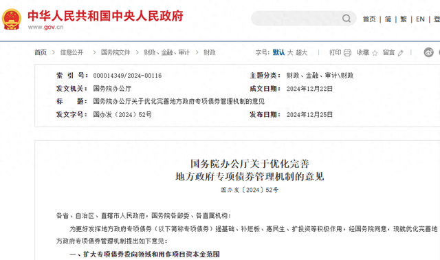 【环球网财经报道 记者 刘晓旭】12月25日,中国政府网发布重磅消息,国务院办公厅近日印发《关于优化完善地方政府专项债券管理机制的意见》(以下简称《意见》),旨在进一步发挥专项债券在加强基础设施建设、补齐民生短板、促进投资扩大等方面的积极作用。此举标志着我国专项债券管理机制迎来重大改革。