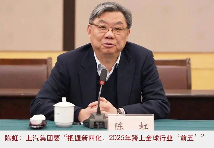 2021年3月,在一次与媒体的“对话”中,时任上汽集团董事长陈虹透露:上汽集团要“把握新四化,2025年跨上全球行业‘前五’”。他说:“至2025年,上汽要从目前全球行业第七跨上‘前五’新台阶,打造具有产业全球竞争力和品牌国际影响力的万亿级汽车产业集团,争创世界一流汽车企业。”