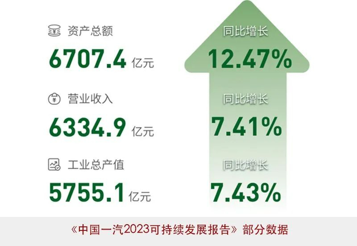 2024年年中,在《中国一汽2023可持续发展报告》中提到,2023年,中国一汽实现整车销量336.7万辆,营业收入6334.9亿元,利润水平继续位居央企前列、行业前茅。