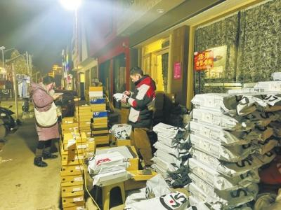随着桑坡村的火爆,这里已经形成了一条完整的产业链:工厂生产、库存配货、专业导购、售后客服、代购……在这里,每个人都有“角色”。凌晨2点,一位快递小哥正在街道旁打包成堆的雪地靴,他说,“一天打包1000个快递是常态,这些店天天‘爆单’。”
