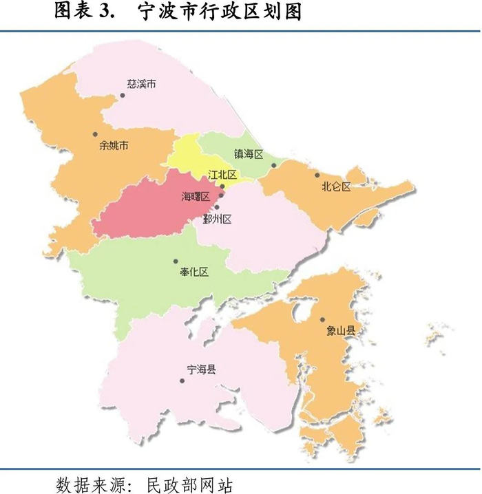 宁波市位于浙江省东北部、长江三角洲南翼,北临杭州湾,西接绍兴,南靠台州,东北临舟山群岛,是我国东南沿海重点开放的港口城市、国家历史文化名城,也是我国15个副省级城市和5个计划单列市之一。全市陆域总面积为9816平方公里,海域总面积为8355.8平方公里,海岸线总长为1594.4公里,现辖海曙、江北、镇海、北仑、鄞州、奉化六区,慈溪、余姚两个县级市以及宁海、象山两县,2023年末全市常住人口为969.7万人,较2022年末增加7.9万人,城镇化率79.9%,高于浙江省平均水平;2023年全市居民人均可支配收入7.2万元,与省内经济第一大市杭州水平(7.4万元)相近。