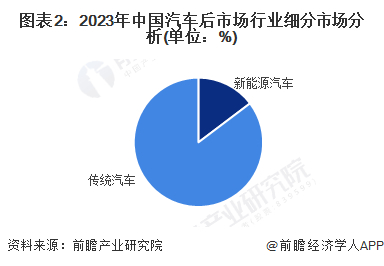 根据汽车后市场服务内容和新能源汽车市场的需求,新能源汽车后市场大体上可分为新能源汽车维修保养服务、新能源汽车充电桩服务、汽车金融服务、汽车租赁服务和二手车交易服务等几类。初步统计2023年我国新能源汽车后市场服务中,新能源汽车金融业务占比最大超过75%。汽车后市场根据汽车类型可以划分为新能源汽车后市场和传统燃油汽车后市场,2023年我国汽车后市场主要还是以传统汽车后市场为主,市场份额占比超85%。