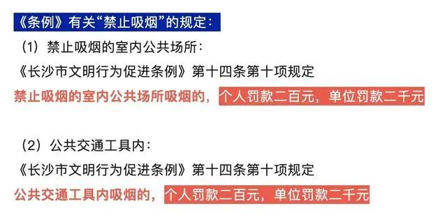 据长沙新闻广播,2019年5月1日,《长沙市文明行为促进条例》正式施行。该条例中,提到有关“禁止吸烟”的规定: