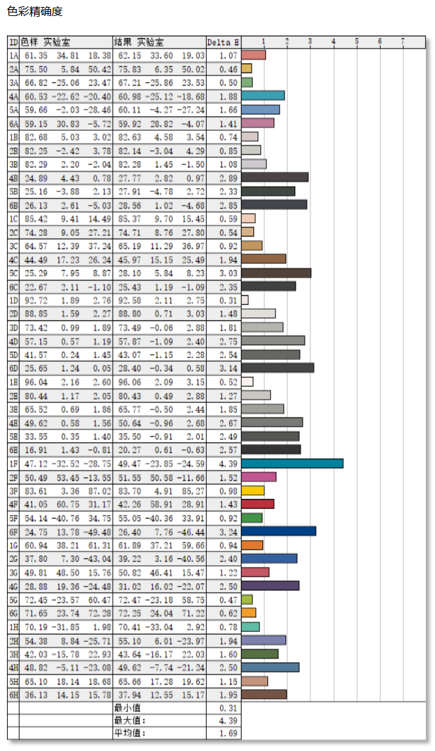 在色彩准确度的测试中,明基PD2706QN显示器结果为平均ΔE值为1.69,最大ΔE为4.39。一般来说平均ΔE<2,人眼就基本上分辨不出色彩的差异,可以说明基PD2706QN在进行专业的设计绘图工作时也能轻松胜任用户要求。