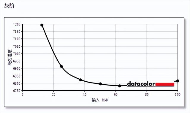 灰阶方面,显示器在全亮度下表现稳定,整体色温维持在6750K-7200K之间,色温表现略微偏冷。