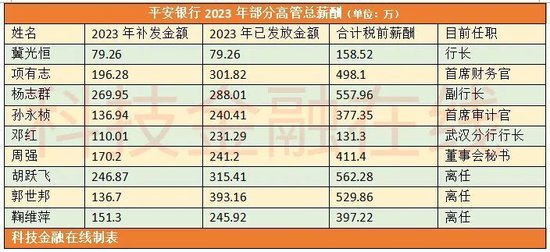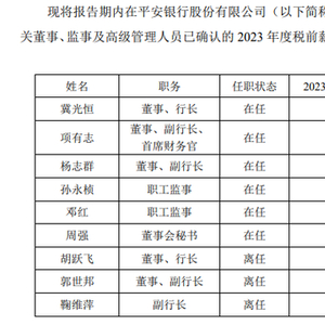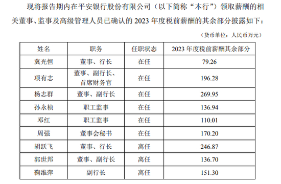 银行高管纷纷补发2023年工资 平安银行一副行长最多补了270万