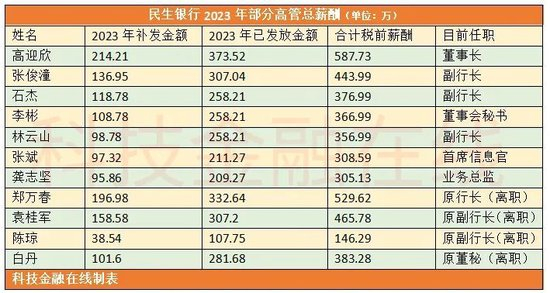首席信息官张斌其余部分为97.32万,加上2023年的211.27万,2023年合计为308.59万。