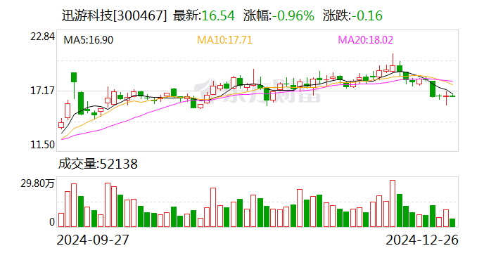 迅游科技(SZ300467,收盘价:16.54元)12月26日晚间发布公告称,截至本公告披露日,袁旭为公司第一大股东,持有公司股份约1794万股(其中限售股份约1345万股,均为高管锁定股),占公司总股本的8.83%,其所持公司股份累计被冻结约1794万股,占其所持公司股份的100%。