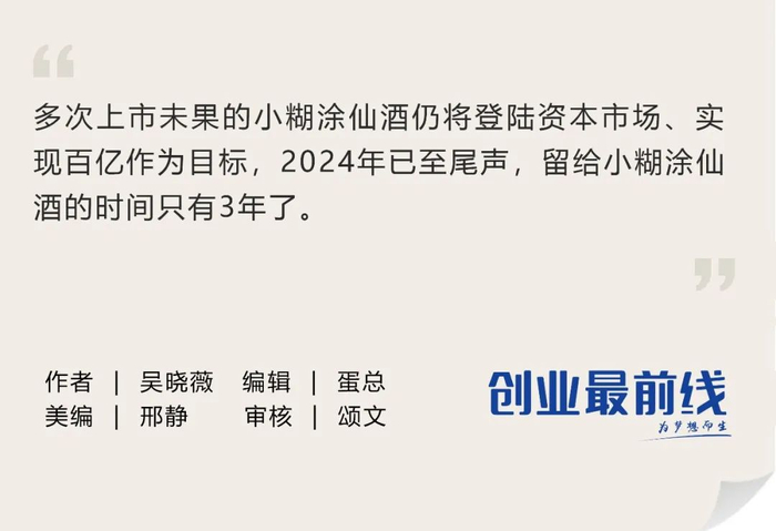 多次上市未果的小糊涂仙酒仍将登陆资本市场、实现百亿作为目标,2024年已至尾声,留给小糊涂仙酒的时间只有3年了。