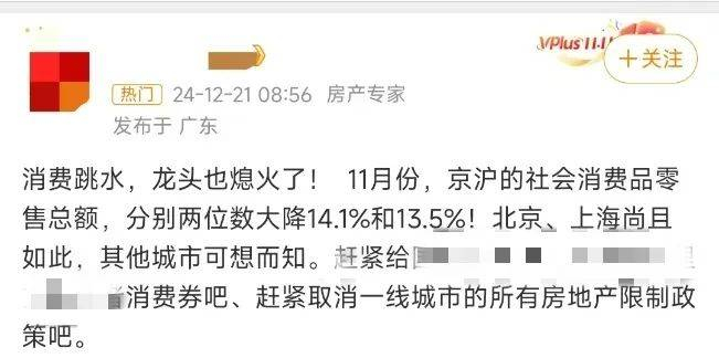 部分网友认为,11月京沪社零下滑,其他城市的社零情况可想而知。如下图:
