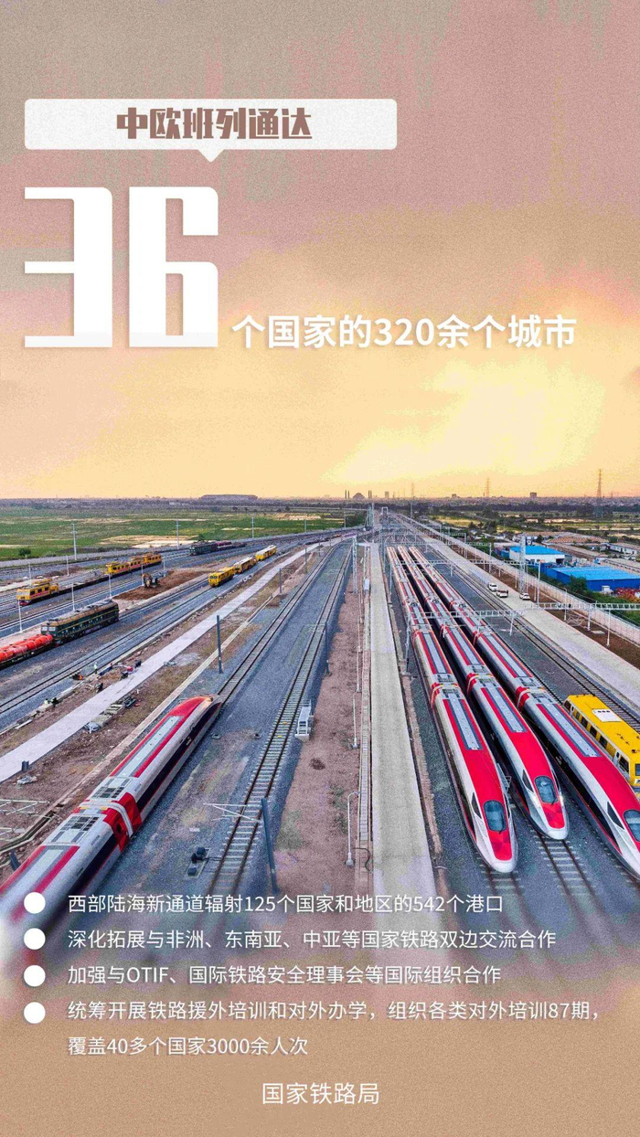 在中国特色大国外交引领下,中国铁路国际影响力和知名度不断提升,中国高铁已经成为一张“亮丽名片”,国际合作深度和广度不断拓展。目前,中欧班列通达36个国家的320余个城市,西部陆海新通道辐射125个国家和地区的542个港口。