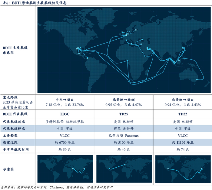 对应原油航运航线:关注TD3C、TD25、TD22航线。波罗的海原油运输指数BDTI成份中,中东→中国路线主要对应TD3C航线,美国→欧洲路线主要对应TD25航线,美国→亚太路线主要对应TD22航线。