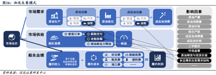 需求端:指标主要包括运量、运距。其中,运量主要受到原油、成品油的产量、消费量、价格等因素影响;运距主要取决于各地区原油、成品油供需结构,受多边政治、经济博弈高度影响。
