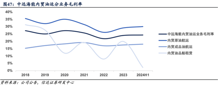 外贸油运毛利率:整体波动性大,2023年实现29.62%,2024年上半年实现32.70%。