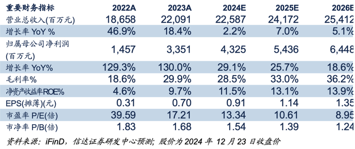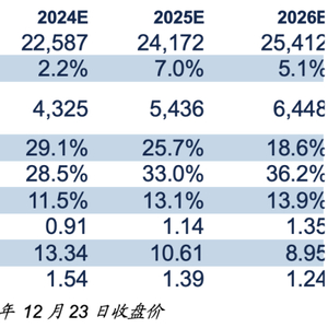 盈利预测与投资评级:我们预计公司2024~2026年实现营业收入225.87、241.72、254.12亿元,同比增长2.25%、7.02%、5.13%,实现归母净利润43.25、54.36、64.48亿元,同比增长29.08%、25.70%、18.60%,对应EPS为0.91、1.14、1.35元,2024年12月23日收盘价对应PE为13.34倍、10.61倍、8.95倍。我们认为公司当前价值低估,首次覆盖给予“增持”评级。