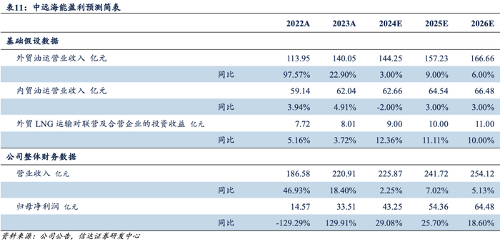 2. 外贸LNG运输板块:随着公司LNG运输业务稳步扩张,我们认为板块投资收益有望稳步增长,预计2024~2026年公司外贸LNG运输对联营和合营企业的投资收益分别实现9、10、11亿元。