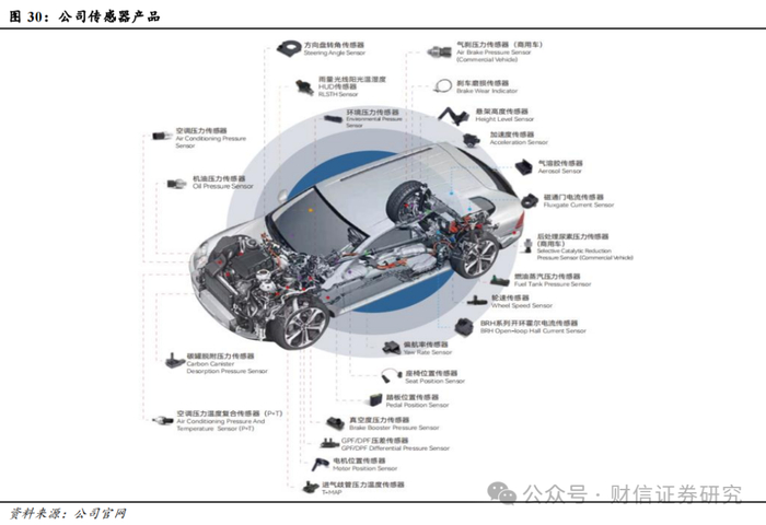 自研+并购拓展传感器品类,未来将持续受益于汽车智能化渗透率提升。公司通过自研+并购形成压力类、光学类、速度类、位置类、电流类、加速度类共6大类、40多种车身传感器产品布局,平均单车价值量约1000元。智能驾驶领域,公司已布局毫米波雷达、摄像头、超声波雷达等环境感知传感器产品并持续新获订单。