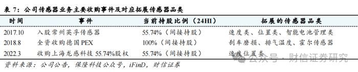 公司通过自研+并购两种方式完成传感器品类拓展。2002年公司开始研制胎压监测传感器。基于TPMS研制积累的技术经验,公司成功开发出汽车压力传感器及光雨量传感器等产品,并掌握了压力感应(MEMS、陶瓷电容)、光学、磁学、芯片封装、传感器标定等核心技术,目前公司已开发和生产压力传感器超过20个品类。在公司主攻的压力传感器之外,保隆科技陆续收购常州英孚、德国PEX并入股上海龙感进入更多传感器品类并获得更多客户资源,成功将公司传感器产品拓展至六大品类40余种产品。根据公司数据,目前公司拥有的传感器品类,平均单车价值量约为1000元,国内市场规模超200亿元。