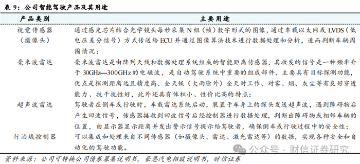 环境感知传感器是实现汽车智能驾驶的基础。高级驾驶辅助系统(ADAS)通过安装于车上的各种环境类传感器,第一时间收集车内外的环境数据,进行静、动态物体的辨识、侦测与追踪等技术上的处理,从而能够让驾驶者在最快的时间察觉可能发生的危险,以引起注意和提高安全性。环境感知传感器能够精确捕捉并整合车辆周围的各种环境数据,是智能驾驶系统做出精准、实时决策的核心依据。常见的环境感知传感器包括视觉传感器、毫米波雷达、激光雷达和超声波雷达等。目前公司智能驾驶产品主要涉及视觉传感器(摄像头)、毫米波雷达、超声波雷达及行泊域控制器。