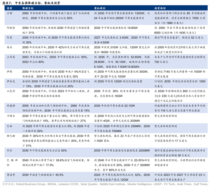 光伏出海中东优势2:能源转型目标明确,政策支持产能本土化