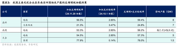 双反初裁涉及国内主要企业税率平均53%,东南亚输美优势大幅削弱。2024年5月,美国商务部启动对东南亚四国(越南、泰国、马来西亚、柬埔寨)的双反调查,其中反补贴初裁结果已于10月公布。11月29日,美国商务部公布东南亚四国反倾销税率初步裁定结果,涉及国内主要企业相关产能的税率落在21.3%-77.9%区间内,平均值为53%;整体反倾销税率区间为0%-271.3%,平均值为83%。双反税率初裁落地后,东南亚四国输美不再有优势,美国组件的高价带来的超额利润被高昂的税收拉齐。因此,中国光伏企业想要继续获取美国市场超额利润仅能依靠美国本土产能或绕道其他海外非东南亚四国产能。
