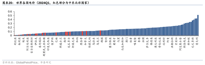 能源成本低廉:中东具有丰富的油气资源优势,传统能源价格较低,电价同样较低。光伏产业链中,电力成本为整体生产成本的重要组分,尤其是硅料/玻璃等高能耗环节。中东地区的低廉电价和能源价格提供了组件生产端的优势。