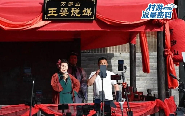 2024年3月,河南开封4A级景区万岁山·大宋武侠城的“王婆说媒”栏目在网上爆红。主持人赵梅化身“开封王婆”,身穿古装,以出色的口才和表演技巧,营造出轻松愉快的相亲氛围,吸引了大量年轻游客前来围观参与。