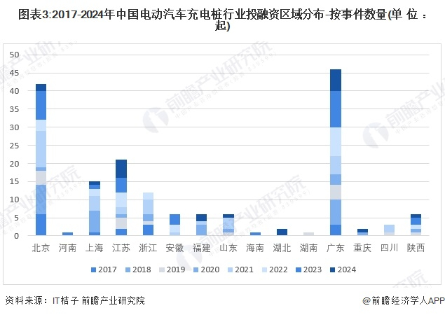 3、电动汽车充电桩投融资集中在广东和北京