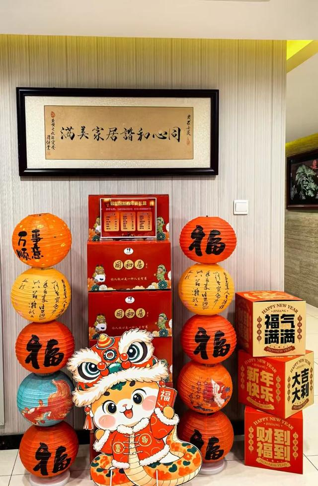 除了喜庆的装饰布置,店内还有层出不穷的丰富玩法等待顾客到来。例如全家人齐动手,包出香气四溢的水饺;在书法大师的指导下,挥毫泼墨书写新春对联;举办盖章活动,根据所得印章数量不同参与各类抽奖;欣赏形态各异、色彩鲜艳的蛇年专属“花饽饽”特展……令顾客享用温暖团圆宴的同时,感受传统文化的别样魅力。