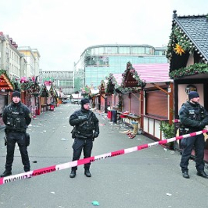 12月21日,警察在德国马格德堡发生袭击事件的圣诞市场警戒。新华社发