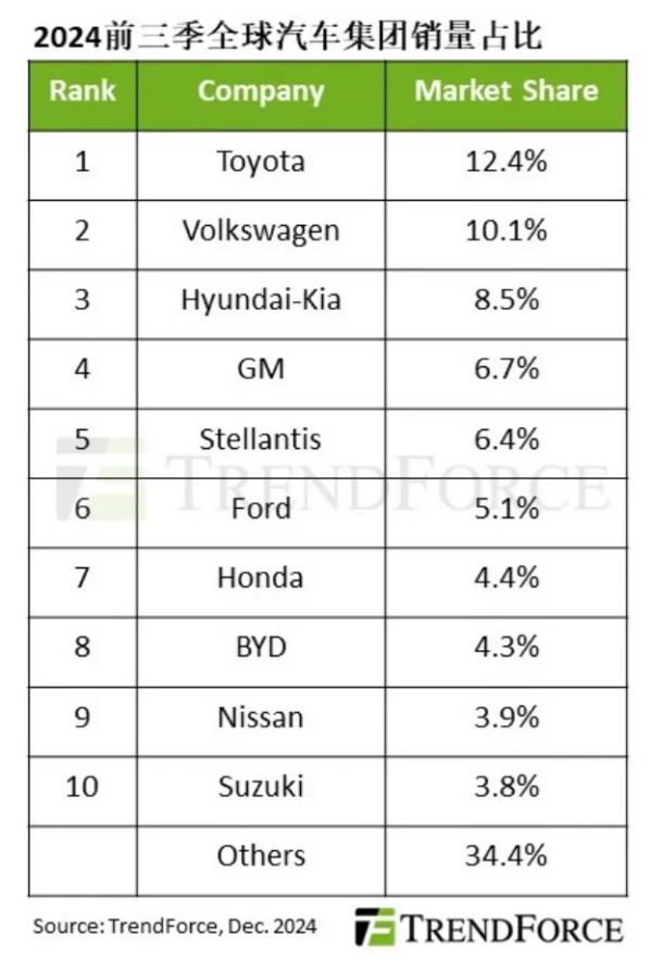 2024年前三季度全球汽车集团市场份额排名:第一没悬念