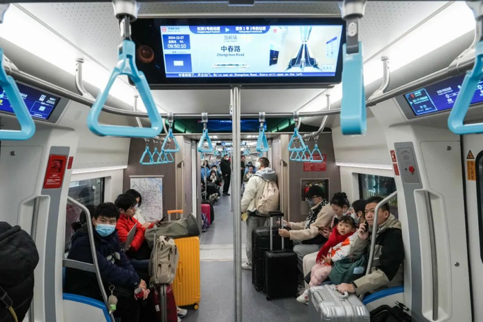 9时,在中春路站,通勤客流占大多数,站台上满满当当都是乘客。王先生说,自己在迪士尼乐园工作,从中春路出发去迪士尼乐园,列车时速160公里,预计只要花半小时左右就能抵达,以后市域机场线就是他的通勤首选。