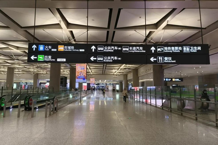 以虹桥2号航站楼站为例,从轨道交通2号、10号线虹桥2号航站楼站出站后,就能看到“市域铁”的标识,按引导牌的方向,步行150米左右即可到达市域机场线。