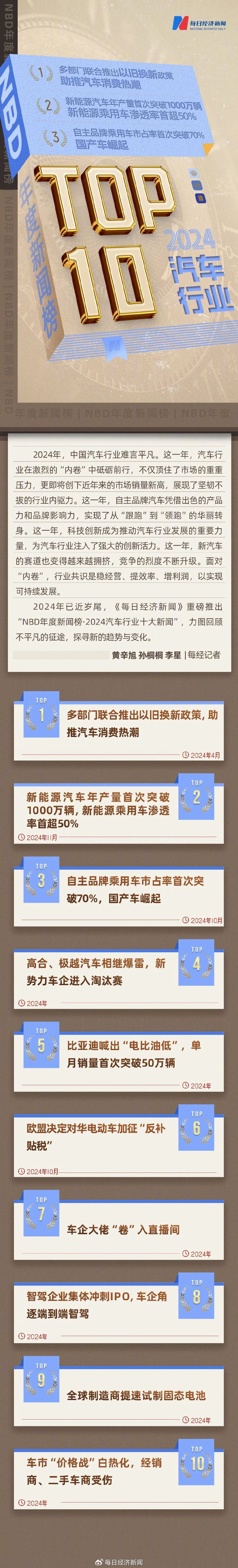 每日经济新闻2024年度汽车行业十大新闻点评