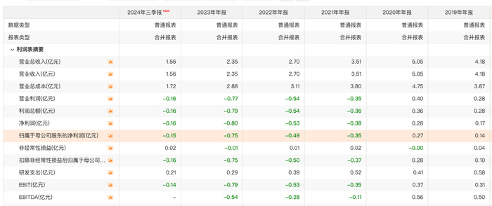 营收逐年下滑,2021年至2023年,公司营收分别为3.51亿元、2.7亿元和2.35亿元。2024年前三季度实现营业收入1.56亿元,同比下降13.31%。持续亏损,2021年至2023年,归母净利润分别为-0.35亿元、-0.49亿元、-0.75亿元,2024年前三季度亏损0.15亿元。