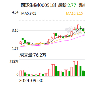 12月27日,四环生物报收2.77元,下跌7.05%,换手率7.4%,成交量76.23 万手,成交额2.13亿元,主力资金净流出2859.03万元,总市值28.52亿元。