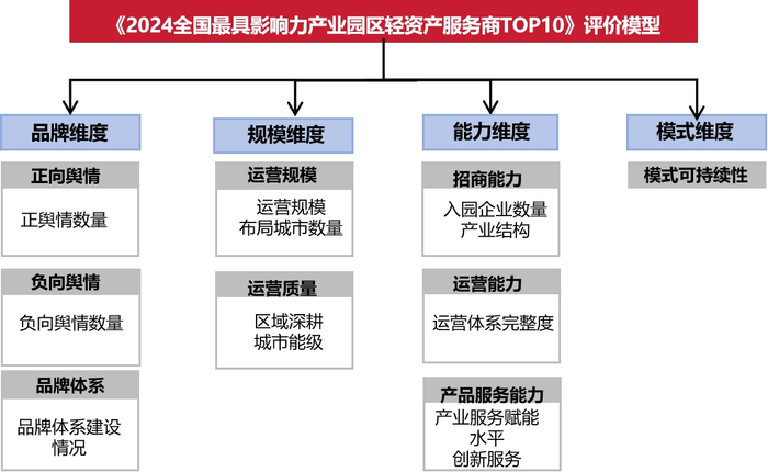 图:《2024全国最具影响力产业园区轻资产服务商TOP10》评价模型