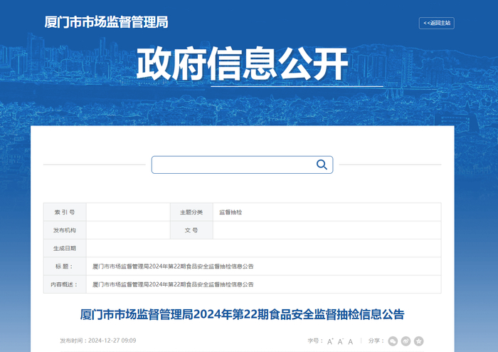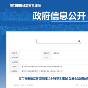 厦门市市场监督管理局2024年第22期食品安全监督抽检信息公告