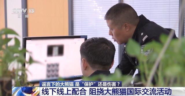 四川省公安厅网安总队三支队支队长 吴锋军:线下他们会收集一些素材,采取碰瓷、曲解,对他们所认为的熊猫一些不健康的行为和状态进行收集。一些熊猫,比如它的毛色可能会随着年龄发生一些变化,但是他们觉得可能因为受到虐待,从而进行碰瓷、曲解。
