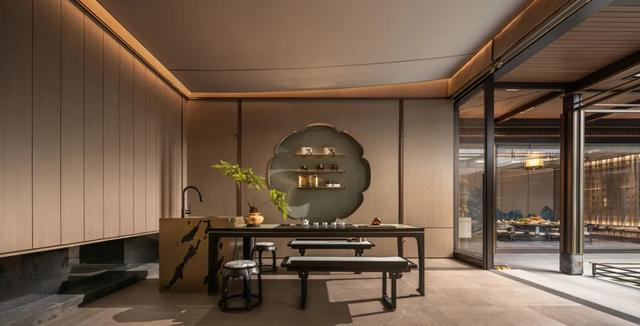 它有功能与松弛感兼具的会所空间。从2023年开始,“卷会所”已基本成为品牌房企的标准动作。私宴厅、健身房、瑜伽室、童梦游乐场等已不足以称为“标杆”,建发·书香云锦的创新在于融入了被称为“宋代四雅”的“焚香、点茶、挂画、插花”的场景。