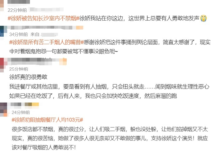 不少网友“站徐娇”,说女王真勇!神烦二手烟+1,她做了我不敢做的。