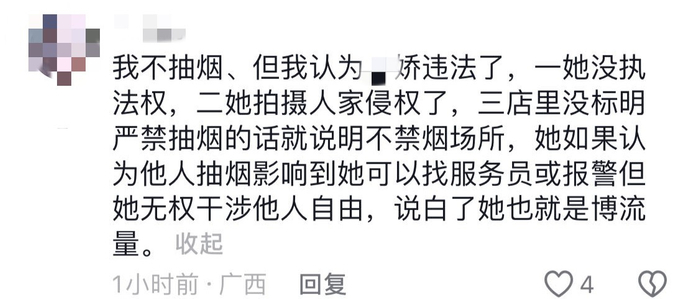 另一部分网友则认为,在没有明确禁止吸烟的场合中,吸烟者的权利也需要得到尊重;