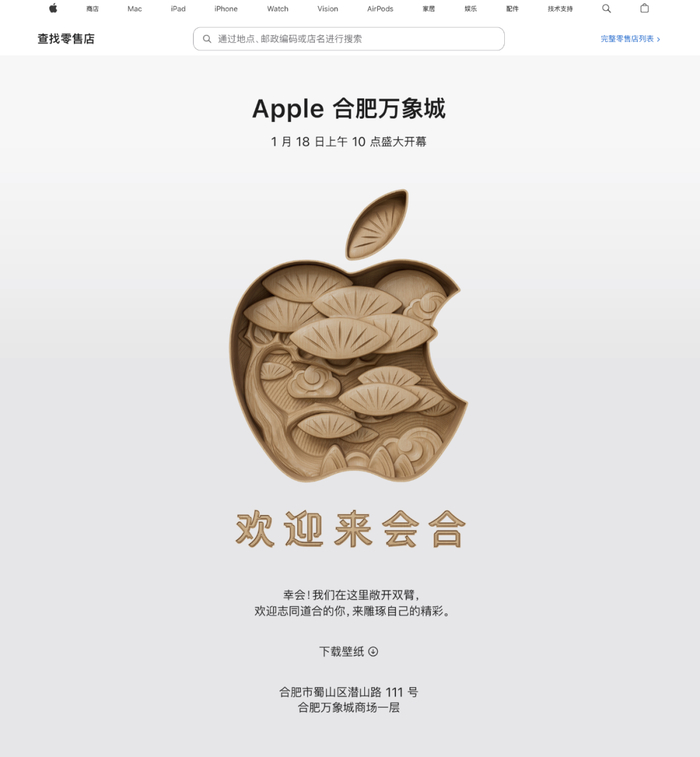 【苹果】落地合肥!安徽首家AppleStore官宣1.18开幕